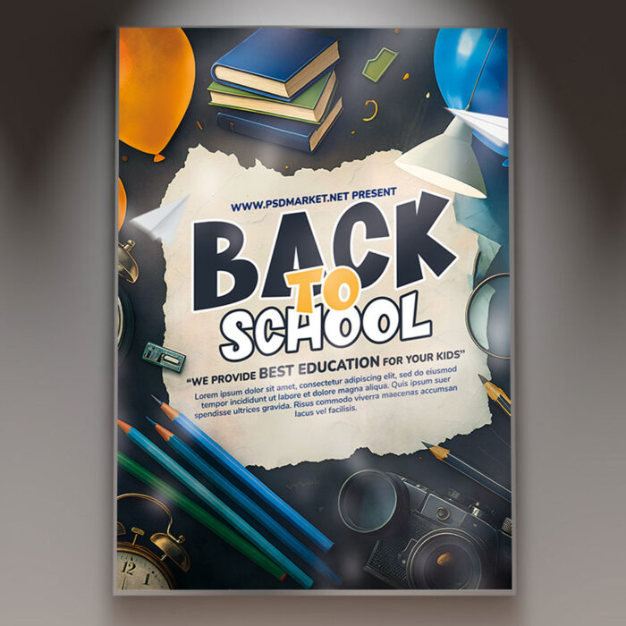 Back 2 School Event Flyer TemplateGet ready to hit the books and the dance floor with our vibrant **Back 2 School Event Flyer Template**! This energetic and festive design is perfect for promoting back-to-school parties, school-sponsored events, or any celebration marking the start of a new academic year. If you’re looking to create an irresistible invitation that screams “school’s back in session,” “new year, new memories,” and “the ultimate welcome party,” this flyer template is engineered to draw a massive and enthusiastic crowd of students. Expect to see striking visuals, often incorporating school-themed elements like notebooks, pencils, lockers, vibrant colors, and bold, playful typography that captures the exciting and hopeful spirit of a new school year. This template is all about setting a fun and celebratory mood, making your “Back 2 School Event” the ultimate destination for an epic gathering! The **Back 2 School Event Flyer Template** offers a highly adaptable and professional layout, ensuring you can clearly communicate all the essential details of your event while perfectly maintaining its energetic and inviting spirit. You can easily customize the text fields to include the specific date and time of your party, the welcoming venue location (e.g., school gym, local club), any special entry requirements or ticket tiers, and information about featured DJs, live entertainment, special contests, or enticing food and drink specials, all presented in a clear and appealing way. Add an enticing description of what attendees can expect, perhaps highlighting opportunities for reuniting with old friends, making new ones, or simply dancing the night away. Detail any exciting features like a designated photo booth, a raffle for school supplies, or special discounts for students with their ID. And of course, include clear contact information or prominent social media handles for further engagement and ticket sales. Many templates also provide exciting options to incorporate additional dynamic graphics like subtle light streaks, abstract patterns, or fun, textured backgrounds, or to adjust the impactful color palette (often bright, contrasting colors against deep blues and whites) to perfectly match your brand’s aesthetic or the event’s specific school theme. This lets you create a truly unique and memorable promotional piece that looks as vibrant and exciting as your event feels. Engineered for maximum reach, the **Back 2 School Event Flyer Template** is designed to be both print-ready for stunning physical distribution and seamlessly optimized for digital sharing. This ensures your exciting invitation reaches a wide and enthusiastic audience. Create eye-catching physical flyers to distribute at schools, universities, student centers, or popular youth hangouts. Effortlessly share the flyer digitally through various social media channels with engaging captions that highlight the night’s energy, email announcements that build anticipation, and online event listings that attract students, parents, and anyone looking to celebrate the start of the new academic year. This dual functionality helps to maximize visibility and create significant buzz around your Back 2 School Event. By utilizing this distinctive and attention-grabbing flyer template, you’re not just announcing a party; you’re creating an invitation that broadcasts pure joyous fun and promises an experience filled with great music, dancing, and unforgettable memories, making your “Back 2 School Event” the ultimate destination for an epic gathering. Grab this template today and prepare to kick off the school year in style! — Features of the Back 2 School Event Flyer Template