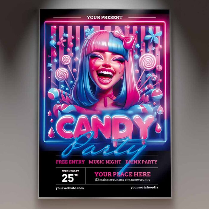 🍭 Get ready to satisfy your sweet cravings and throw the ultimate candy party – download our Candy Party Card Printable PSD Template today and get the sugary celebration started!