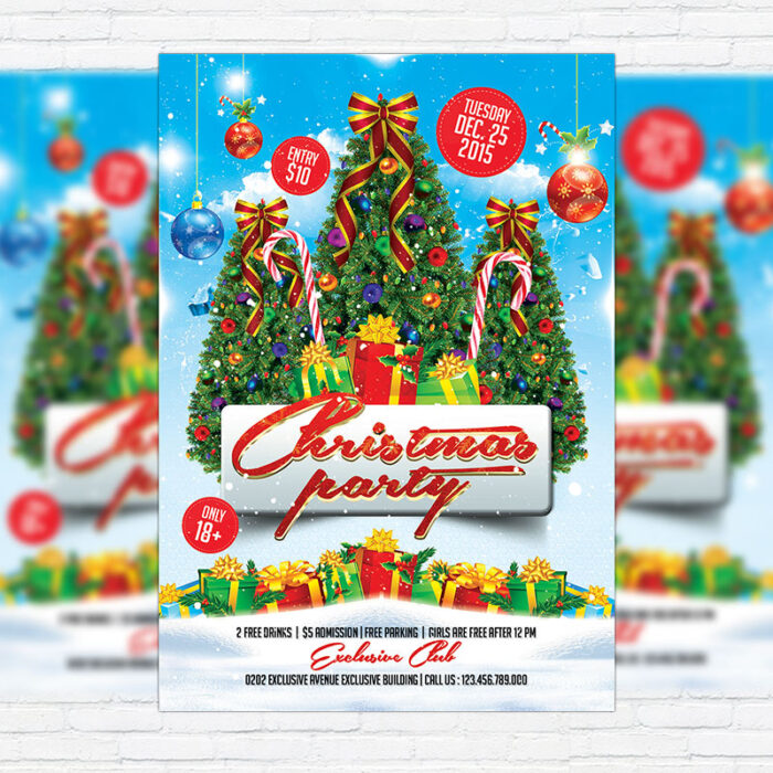 The Christmas Party is the exclusive Photoshop PSD flyer template designed by ExclusiveFlyer to promote your Christmas Party. This is a modern, stylish flyer and just be used for a Christmas Party or Christmas Night. Dear customers! – you can also: Customize any flyers or Hire Us to create any unique product. Also, you can get unlimited access to all our templates. You can buy 1 month membership, 3 or 6 months membership or even 1 year membership plan and login on site, choose a design, click the button DOWNLOAD TEMPLATE and it’s yours. No hassle, no checkout! When you paid the template, you can find it in your personal account and of course you’ve got a message to your e-mail (maybe in spam) with link to download. Also, you can find all templates, which you buy, in your personal account! All of our flyers have a very good quality (300DPI). And it means that you just need to download one of them and make the necessary modifications such as replace the elements or choose the colors and start to invite your guests! You can order from us design of Banner Ad, Bi-Fold Brochure, Tri-Fold Brochure, Business Card, Logo, One-Sided Flyer, Two-sided Flyer or Postcard. All you need is to checkout and write us all information on our e-mail or skype. (order now). There are a lot of free flyer templates, free business card templates on our site! Also there are a lot of categories of flyers such as club flyers, seasonal flyers, sport flyers and also business flyers. You have a great choise on our site, so good luck! Don’t forget to follow our Facebook community, our page on Twitter, on Pinterest and on Tumblr and leave comments, cause we work for you! PSD is set up in 1275×1875 dimension (4″×6″ with 0,25″ bleed). The PSD file is very well organised, with color coded groups and layers named appropriately. Remember, all stock images of models and other people used only for demonstration all charms of the flyer and don’t included in the download!