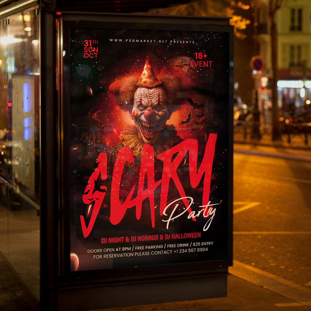 Club Party Scary Flyer TemplateGet ready for a frighteningly good time! Our electrifying **Club Party Scary Flyer Template** is the perfect design tool for promoting your ultimate horror-themed nightlife event, a massive Halloween dance party, a gothic-themed club night, or any occasion that demands high energy and a spine-chilling atmosphere. If you’re looking to create an irresistible invitation that screams “**Scream louder than the music!**,” “**The party where the fear never stops**,” and “**Unforgettable night of fright and fun**,” this flyer template is engineered to draw a huge, excited crowd ready for the biggest party of the spooky season. Expect to see striking visuals, often incorporating energetic elements like dramatic spotlights cutting through fog, sinister silhouettes of dancing figures, classic horror motifs, and a bold, unsettling typography that perfectly captures the raw, intense, and exhilarating spirit of a **Scary Club Party**. This template is all about setting a chilling, high-octane mood, making your club the ultimate destination for an epic gathering. The **Club Party Scary Flyer Template** offers a highly adaptable and professional layout, ensuring you can clearly communicate all the essential details of your event while perfectly maintaining its horrifyingly energetic atmosphere. You can easily customize the text fields to include the specific date and time of your club night, the eerie venue location, any special entry requirements (e.g., ticket purchase details, VIP tables), and information about featured entertainment (e.g., a **DJ** spinning horror house mixes, a terrifying light show), details on the **costume contest** (prizes and categories!), or enticing food and drink specials (e.g., “killer cocktails,” “blood-red shots”), all presented in a clear and appealing way. Add an enticing description of what attendees can expect, perhaps highlighting opportunities for a special **VIP “Terror Zone” lounge**, a themed photo booth with scary props, or simply dancing until dawn in a high-energy, suspenseful atmosphere. And of course, include clear contact information or prominent social media handles for further engagement and ticket sales. Many templates also provide exciting options to incorporate additional dynamic graphics like light trails, fog effects, or aggressive visual overlays, or to adjust the impactful color palette (often deep reds, sinister blacks, and electric blues) to perfectly match your brand’s aesthetic or the event’s specific vibe. This lets you create a truly unique and memorable promotional piece that looks as intense and exciting as your club night feels. Engineered for maximum reach, the **Club Party Scary Flyer Template** is designed to be both print-ready for stunning physical distribution and seamlessly optimized for digital sharing. This ensures your exciting invitation reaches a wide and enthusiastic audience. Create eye-catching physical flyers to distribute at other clubs, universities, horror conventions, or through nightlife event groups. Effortlessly share the flyer digitally through various social media channels with engaging captions that highlight the night’s eerie energy, email announcements that build anticipation, and online event listings that attract horror fans, club-goers, and anyone looking for the biggest fright of the year. This dual functionality helps to maximize visibility and create significant buzz around your Club Party Scary event. By utilizing this distinctive and attention-grabbing flyer template, you’re not just announcing a party; you’re creating an invitation that broadcasts pure, thrilling fun and promises an experience filled with loud music, intense scares, and unforgettable memories, making your “**Club Party Scary**” the ultimate destination for an epic gathering. Grab this template today and get ready to own the night! — Features of the Club Party Scary Flyer Template