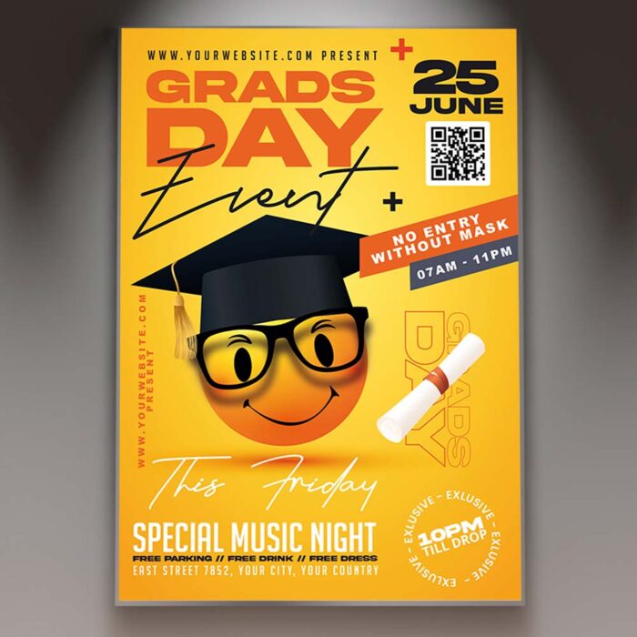 Graduation Day Card Printable Template Flyer PSD is a simply modern flyer design by PSDmarket Team to be used with Photoshop CS3 and higher. Save your time and use it for business or for your clients! This can be use for Graduation Day, Graduation Party, Graduation 2023, Class of 2023, Class of 2023 Party, Class of 2023 Night, Class of 2024, Happy Prom Night, Prom Night Celebration, Prom Night Party, Prom Night, Graduation Night, Prom Day, Prom Party, Back to School, Back to School Party, Graduation Day and others.