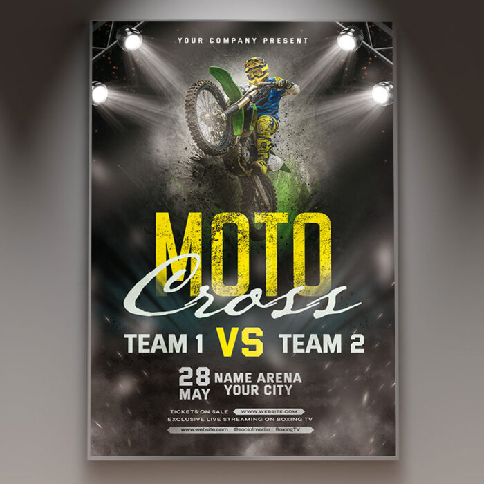 Moto Cross Flyer TemplateIgnite the engine and capture the thrill of the race with our powerful **Moto Cross Flyer Template**! This intense and action-packed design is perfect for promoting motocross races, dirt bike competitions, off-road events, or any gathering where speed, dirt, and adrenaline are the main attractions. If you’re looking to create an irresistible invitation that screams “high-flying action,” “epic competition,” and “a day in the dirt,” this flyer template is engineered to draw a massive and enthusiastic crowd of motorsport fans. Expect to see striking visuals, often incorporating a dirt bike in mid-air, a cloud of dust, a rugged terrain, vibrant team colors, and bold, aggressive typography that captures the exhilarating and competitive spirit of a motocross event. This template is all about setting a high-octane and thrilling mood, making your “Moto Cross Event” the ultimate destination for combat sports fans! The **Moto Cross Flyer Template** offers a highly adaptable and professional layout, ensuring you can clearly communicate all the essential details of your event while perfectly maintaining its energetic and intense spirit. You can easily customize the text fields to include the specific date and time of the race, the rugged venue location, any special entry requirements or ticket tiers, and information about featured riders, race categories (e.g., amateur, pro), live entertainment, or exciting food and beverage options, all presented in a clear and appealing way. Add an enticing description of what attendees can expect, perhaps highlighting opportunities for witnessing jaw-dropping jumps, experiencing a thrilling atmosphere, or simply enjoying the camaraderie of fellow moto enthusiasts. Detail any exciting features like a pit pass, a designated fan zone, or merchandise sales. And of course, include clear contact information or prominent social media handles for further engagement and ticket sales. Many templates also provide exciting options to incorporate additional dynamic graphics like subtle speed blurs, flying dirt particles, or dramatic lighting effects, or to adjust the impactful color palette (often deep blacks, earthy tones, and vibrant splashes of neon) to perfectly match your brand’s aesthetic or the event’s specific racing theme. This lets you create a truly unique and memorable promotional piece that looks as powerful and exciting as your event feels. Engineered for maximum reach, the **Moto Cross Flyer Template** is designed to be both print-ready for stunning physical distribution and seamlessly optimized for digital sharing. This ensures your exciting invitation reaches a wide and enthusiastic audience. Create eye-catching physical flyers to distribute at off-road parks, motorcycle dealerships, sports bars, or community centers. Effortlessly share the flyer digitally through various social media channels with engaging captions that highlight the night’s intensity, email announcements that build anticipation, and online event listings that attract motorsport enthusiasts, adrenaline junkies, and anyone looking for a thrilling day out. This dual functionality helps to maximize visibility and create significant buzz around your Moto Cross Event. By utilizing this distinctive and attention-grabbing flyer template, you’re not just announcing a race; you’re creating an invitation that broadcasts pure adrenaline and promises an experience filled with powerful engines, daring stunts, and unforgettable moments, making your “Moto Cross Event” the ultimate destination for an epic showdown. Grab this template today and prepare to kick up some dust! — Features of the Moto Cross Flyer Template