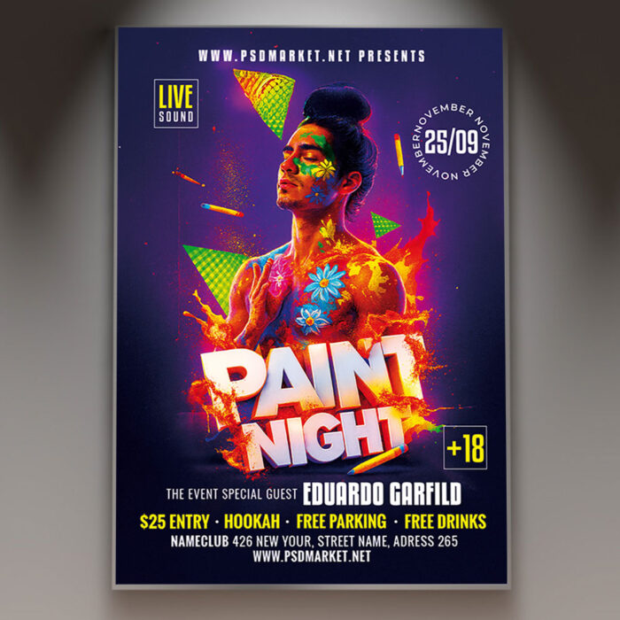 Paint Night Flyer TemplateUnleash your inner artist with our creative **Paint Night Flyer Template**! This artistic and inviting design is perfect for promoting painting classes, creative workshops, or any event that combines art with social fun. If you’re looking to create an irresistible invitation that says “sip and paint,” “discover your masterpiece,” and “a night of creative fun,” this flyer template is engineered to draw an enthusiastic and engaged crowd. Expect to see striking visuals, often incorporating vibrant elements like paint splatters, an artist’s brush, a wine glass, and a bold, artistic typography that captures the creative and relaxed spirit of a paint night. This template is all about setting a lively and exciting mood, making your “Paint Night” event the ultimate destination for a memorable gathering! The **Paint Night Flyer Template** offers a highly adaptable and professional layout, ensuring you can clearly communicate all the essential details of your event while perfectly maintaining its creative and inviting feel. You can easily customize the text fields to include the specific date and time of your class, the location of the studio or venue, any special entry requirements or registration details, and information about featured paintings, instructors, or a “book now” call-to-action, all presented in a clear and appealing way. Add an enticing description of what attendees can expect, perhaps highlighting opportunities for a special “wine and cheese” pairing, a “beginners welcome” theme, or simply the chance to enjoy a night of art and friendship in a fun and inviting atmosphere. Detail any exciting features like a designated VIP area for a special meal, a special prize for the best-dressed guest, or a thrilling scavenger hunt. And of course, include clear contact information or prominent social media handles for further engagement and booking. Many templates also provide exciting options to incorporate additional dynamic graphics like subtle light effects, rustic wood textures, or vintage engravings, or to adjust the impactful color palette (often deep reds, rich blues, and grassy greens) to perfectly match your brand’s aesthetic or the event’s specific theme. This lets you create a truly unique and memorable promotional piece that looks as authentic and professional as your event feels. Engineered for maximum reach, the **Paint Night Flyer Template** is designed to be both print-ready for stunning physical distribution and seamlessly optimized for digital sharing. This ensures your exciting invitation reaches a wide and enthusiastic audience. Create eye-catching physical flyers to distribute at community centers, local businesses, or through neighborhood groups. Effortlessly share the flyer digitally through various social media channels with engaging captions that highlight the event’s energetic vibe, email announcements that build anticipation, and online event listings that attract sports fans, families, and anyone looking for a top-notch sporting experience. This dual functionality helps to maximize visibility and create significant buzz around your “Paint Night” event. By utilizing this distinctive and attention-grabbing flyer template, you’re not just announcing a game; you’re creating an invitation that broadcasts pure authentic excitement and promises an experience filled with great sports, great company, and unforgettable results, making your “Paint Night” event the ultimate destination for an epic gathering. Grab this template today and get ready to create something beautiful! — Features of the Paint Night Flyer Template