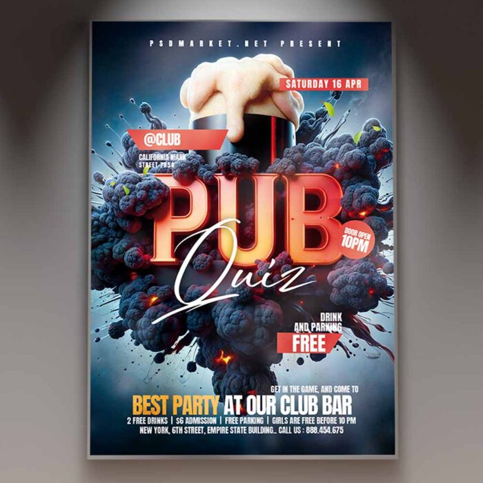 Calling all trivia titans, armchair experts, and anyone who loves a good pint and a good laugh! Dust off your encyclopedias (or fire up your favorite search engine!), gather your most competitive crew, and prepare for a side-splitting night with our Pub Quiz Card Printable PSD Template. This user-friendly tool empowers you to create hilarious invitations that set the stage for a night filled with witty banter, friendly competition, and the ultimate test of random knowledge.