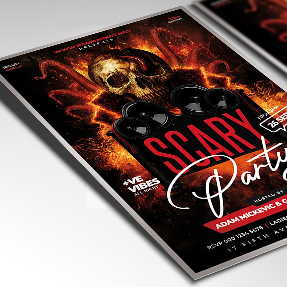 Scary Party 2026 Flyer TemplatePrepare for the fright of the future with our chilling **Scary Party 2026 Flyer Template**! This terrifying and intensely designed template is the ultimate tool for promoting your high-stakes Halloween 2026 bash, a futuristic horror club night, a special haunted event for the new year, or any gathering where you promise maximum scares and unforgettable chaos. If you’re looking to create an irresistible invitation that screams “**The biggest scare of 2026**,” “**Prepare for pure terror**,” and “**The future of fear is here**,” this flyer template is engineered to draw a massive and enthusiastic crowd of thrill-seekers. Expect to see striking visuals, often incorporating energetic elements like menacing, futuristic figures, digital blood-splatter effects, foggy, grim landscapes, and a bold, violently distressed typography that perfectly captures the raw, unsettling, and exhilarating spirit of a **Scary Party in 2026**. This template is all about setting a spine-tingling, high-octane mood, making your “**Scary Party 2026**” the ultimate destination for an experience beyond the ordinary. The **Scary Party 2026 Flyer Template** offers a highly adaptable and professional layout, ensuring you can clearly communicate all the essential details of your terrifying event while perfectly maintaining its horrifyingly fun atmosphere. You can easily customize the text fields to include the specific date and time of your event, the eerie venue location, any special entry requirements (e.g., ticket purchase details, mandatory costumes), and information about featured entertainment (e.g., a **DJ** spinning horror remixes, scare actors), details on the **costume contest** (prizes and categories!), or enticing food and drink specials (e.g., “killer cocktails,” “blood-red shooters”), all presented in a clear and appealing way. Add an enticing description of what attendees can expect, perhaps highlighting opportunities for a special **VIP “Quarantine Zone” lounge**, a themed photo booth, or simply mingling in a terrifyingly fun, high-energy atmosphere. And of course, include clear contact information or prominent social media handles for further engagement and ticket sales. Many templates also provide exciting options to incorporate additional dynamic graphics like neon horror accents, digital glitches, or aggressive visual overlays, or to adjust the impactful color palette (often deep reds, sinister blacks, and electric blues) to perfectly match your brand’s aesthetic or the event’s specific horror theme. This lets you create a truly unique and memorable promotional piece that looks as intense and exciting as your party feels. Engineered for maximum reach, the **Scary Party 2026 Flyer Template** is designed to be both print-ready for stunning physical distribution and seamlessly optimized for digital sharing. This ensures your exciting invitation reaches a wide and enthusiastic audience. Create eye-catching physical flyers to distribute at clubs, horror conventions, local theaters, or through fear-seeking event groups. Effortlessly share the flyer digitally through various social media channels with engaging captions that highlight the night’s eerie energy, email announcements that build anticipation, and online event listings that attract horror fans, party-goers, and anyone looking for the biggest fright of the year. This dual functionality helps to maximize visibility and create significant buzz around your Scary Party 2026. By utilizing this distinctive and attention-grabbing flyer template, you’re not just announcing a party; you’re creating an invitation that broadcasts pure, thrilling fun and promises an experience filled with loud music, intense scares, and unforgettable memories, making your “**Scary Party 2026**” the ultimate destination for an epic gathering. Grab this template today and get ready for the ultimate scare! — Features of the Scary Party 2026 Flyer Template