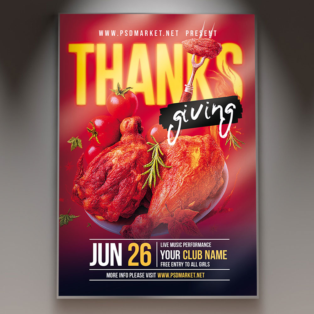 Start promoting your next sensational “**Thanksgiving Event**” now with our unique and vibrant flyer template. Download it today and get ready to dance the night away!