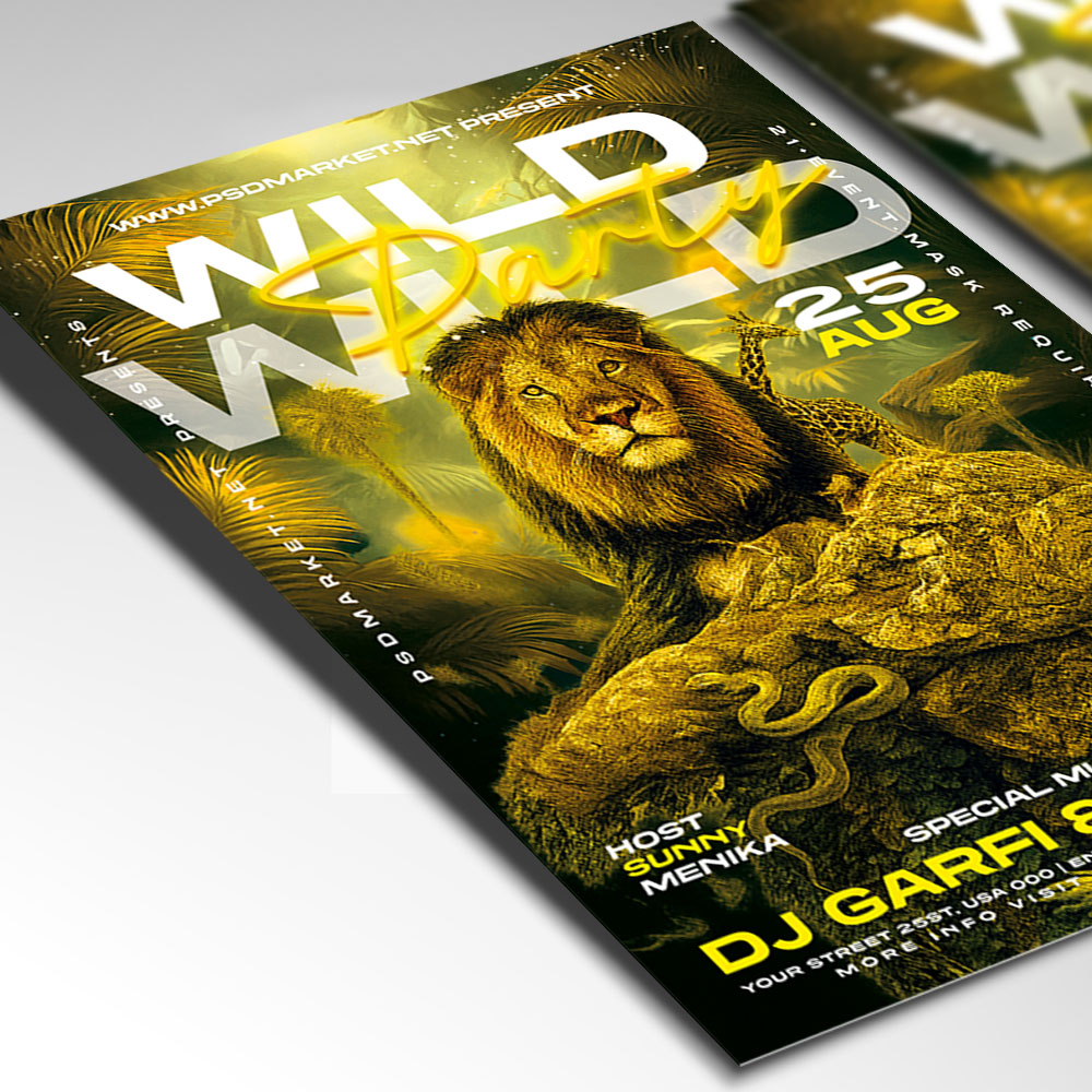 Wild Party Flyer TemplateUnleash the craziness and get ready for an epic night with our explosive **Wild Party Flyer Template**! This dynamic and boundary-pushing design is perfect for promoting high-energy club events, massive college parties, foam parties, or any gathering where the goal is to go absolutely wild. If you’re looking to create an irresistible invitation that screams “**no limits tonight**,” “**get ready to lose control**,” and “**the ultimate party experience**,” this flyer template is engineered to draw a massive and enthusiastic crowd. Expect to see striking visuals, often incorporating energetic elements like vibrant neon colors, blurred motion, edgy typography, and a powerful, chaotic aesthetic that captures the raw and exhilarating spirit of a truly wild night. This template is all about setting an intense, high-octane mood, making your “**Wild Party**” the ultimate destination for an unforgettable experience! The **Wild Party Flyer Template** offers a highly adaptable and professional layout, ensuring you can clearly communicate all the essential details of your event while perfectly maintaining its crazy and inviting energy. You can easily customize the text fields to include the specific date and time of the event, the pulsating venue location, any special entry requirements or ticket tiers, and information about featured **DJs/performers**, special promotions (e.g., a “free shots” hour), or a “**get tickets now**” call-to-action, all presented in a clear and appealing way. Add an enticing description of what attendees can expect, perhaps highlighting opportunities for a special **foam pit**, an intense light show, or simply dancing until the sun comes up in a high-energy atmosphere. Detail any exciting features like a designated VIP area with bottle service, details on any special themes (e.g., glow-in-the-dark), or the presence of a thrilling live performance. And of course, include clear contact information or prominent social media handles for further engagement and ticket sales. Many templates also provide exciting options to incorporate additional dynamic graphics like splatter effects, abstract geometric shapes, or aggressive visual overlays, or to adjust the impactful color palette (often electric yellows, shocking pinks, and deep blacks) to perfectly match your brand’s aesthetic or the event’s specific vibe. This lets you create a truly unique and memorable promotional piece that looks as intense and exciting as your event feels. Engineered for maximum reach, the **Wild Party Flyer Template** is designed to be both print-ready for stunning physical distribution and seamlessly optimized for digital sharing. This ensures your exciting invitation reaches a wide and enthusiastic audience. Create eye-catching physical flyers to distribute at clubs, universities, popular hangouts, or through local event groups. Effortlessly share the flyer digitally through various social media channels with engaging captions that highlight the night’s energetic vibe, email announcements that build anticipation, and online event listings that attract thrill-seekers, party-goers, and anyone looking for a night of pure, unadulterated fun. This dual functionality helps to maximize visibility and create significant buzz around your Wild Party. By utilizing this distinctive and attention-grabbing flyer template, you’re not just announcing a party; you’re creating an invitation that broadcasts pure authentic fun and promises an experience filled with loud music, crazy fun, and unforgettable memories, making your “**Wild Party**” the ultimate destination for an epic gathering. Grab this template today and get ready to lose control! — Features of the Wild Party Flyer Template