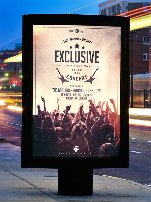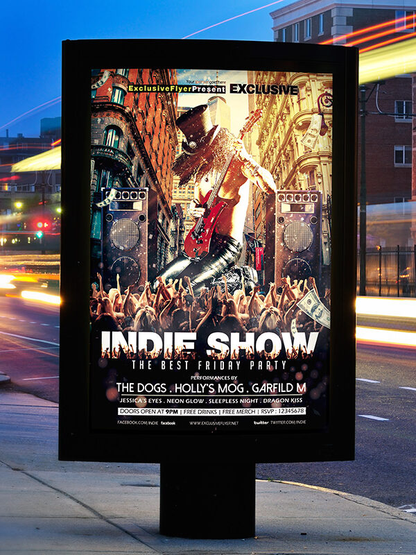 The Music Show is the exclusive Photoshop PSD flyer template designed by ExclusiveFlyer to promote your Music Show. This is a modern, stylish flyer and just be used for a Indie Festival, Rock Night, Music Party etc. Dear customers! – you can also: Customize any flyers or Hire Us to create any unique product. Also, you can get unlimited access to all our templates. You can buy 1 month membership, 3 or 6 months membership or even 1 year membership plan and login on site, choose a design, click the button DOWNLOAD TEMPLATE and it’s yours. No hassle, no checkout! When you paid the template, you can find it in your personal account and of course you’ve got a message to your e-mail (maybe in spam) with link to download. Also, you can find all templates, which you buy, in your personal account! All of our flyers have a very good quality (300DPI). And it means that you just need to download one of them and make the necessary modifications such as replace the elements or choose the colors and start to invite your guests! You can order from us design of Banner Ad, Bi-Fold Brochure, Tri-Fold Brochure, Business Card, Logo, One-Sided Flyer, Two-sided Flyer or Postcard. All you need is to checkout and write us all information on our e-mail or skype. (order now). There are a lot of free flyer templates, free business card templates on our site! Also there are a lot of categories of flyers such as club flyers, seasonal flyers, sport flyers and also business flyers. You have a great choise on our site, so good luck! Don’t forget to follow our Facebook community, our page on Twitter, on Pinterest and on Tumblr and leave comments, cause we work for you! PSD is set up in 1275×1875 dimension (4” x 6” with 0,25” bleed). The PSD file is very well organised, with color coded groups and layers named appropriately. Remember, all stock images of models and other people used only for demonstration all charms of the flyer and don’t included in the download!