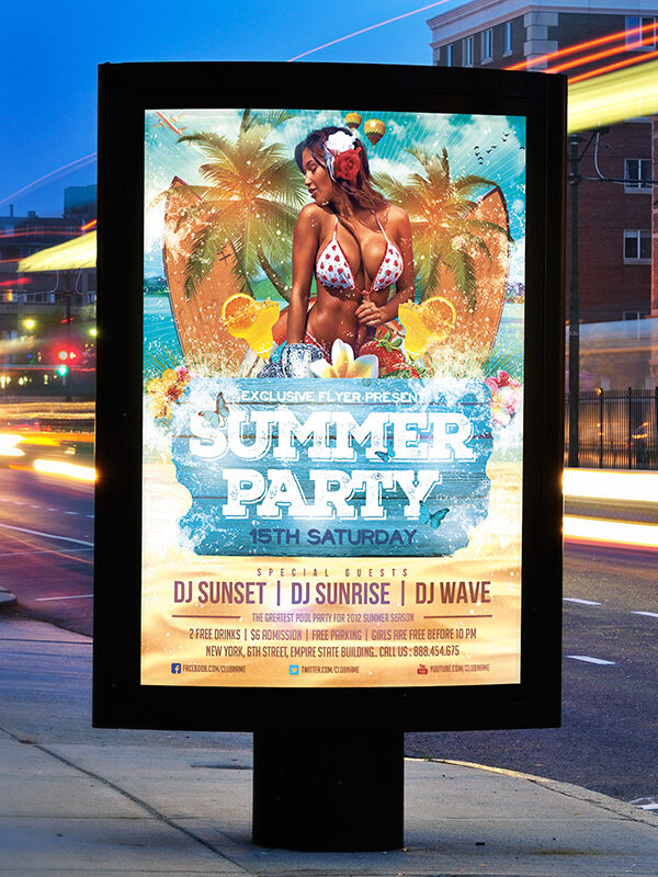 Spring Break Party Night A5 Flyer Template for Adobe Photoshop