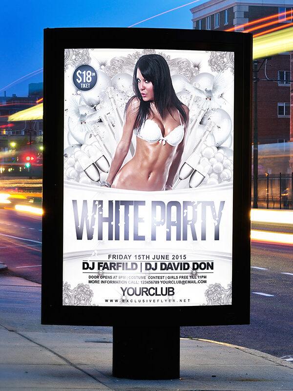 The White and Gold Party is the exclusive Photoshop PSD flyer template designed by ExclusiveFlyer to promote your White and Gold Party. This is a modern, stylish flyer and just be used for a Gold Party or White Night. Dear customers! – you can also: Customize any flyers or Hire Us to create any unique product. Also, you can get unlimited access to all our templates. You can buy 1 month membership, 3 or 6 months membership or even 1 year membership plan and login on site, choose a design, click the button DOWNLOAD TEMPLATE and it’s yours. No hassle, no checkout! When you paid the template, you can find it in your personal account and of course you’ve got a message to your e-mail (maybe in spam) with link to download. Also, you can find all templates, which you buy, in your personal account! All of our flyers have a very good quality (300DPI). And it means that you just need to download one of them and make the necessary modifications such as replace the elements or choose the colors and start to invite your guests! You can order from us design of Banner Ad, Bi-Fold Brochure, Tri-Fold Brochure, Business Card, Logo, One-Sided Flyer, Two-sided Flyer or Postcard. All you need is to checkout and write us all information on our e-mail or skype. (order now). There are a lot of free flyer templates, free business card templates on our site! Also there are a lot of categories of flyers such as club flyers, seasonal flyers, sport flyers and also business flyers. You have a great choise on our site, so good luck! Don’t forget to follow our Facebook community, our page on Twitter, on Pinterest and on Tumblr and leave comments, cause we work for you! PSD is set up in 1275×1875 dimension (4″×6″ with 0,25″ bleed). The PSD file is very well organised, with color coded groups and layers named appropriately. Remember, all stock images of models and other people used only for demonstration all charms of the flyer and don’t included in the download!